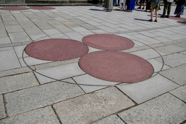 本殿の階段の下付近を見ると、実は出雲大社はかつて48メートルあった説の根拠になった